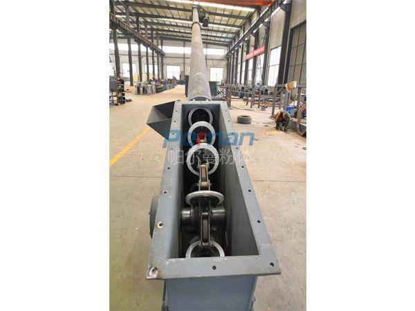 管鏈輸送機在輸送物料過程中,具有埋刮板輸送機輸送能力大,使用壽命長、維修費用低,密封性好,安全,耗能低的特點,也具備斗式提升機的垂直輸送的能力,同時布置更為靈活(水平-垂直/傾斜-水平),密封性能更高。物料垂直輸送中無回料,不破壞物料,不揚塵的特點。在輸送含水物料、易吸附物料、比重很輕的物料時,在機箱內可安裝電動清掃器。