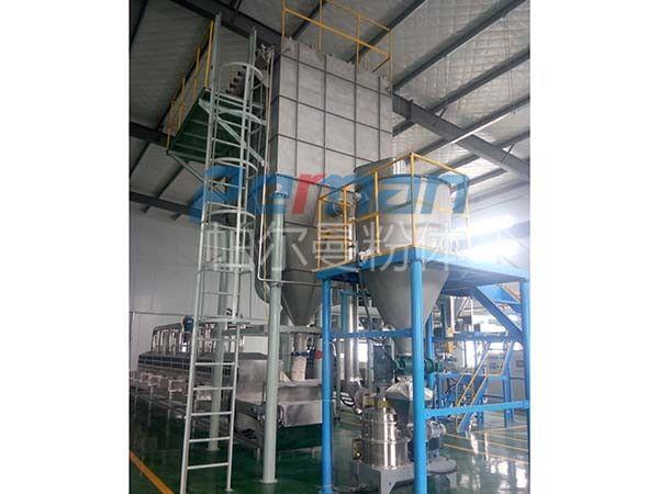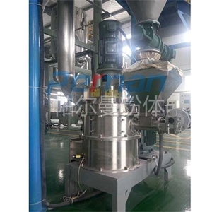 在分級機裝置中分級設備主要是由分級葉輪組成的,在物料粉碎過程中能夠把粉碎完的物料進行粒徑的篩選,符合顆粒直徑的物料會通過設備中的出料口進行輸出進入到旋風收集器中進行集中收集然后實現出料。未符合顆粒直徑的物料會繼續沿著腔體內壁僅需回落到粉碎室中繼續進行二次粉碎直到達到標準為止。