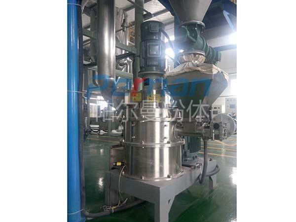 粉碎機設備腔體在形狀的選擇上采用的是直圓筒設計,在上半部分安裝有超微分級機系統,在設備的下半部分安裝有超微粉碎機系統。