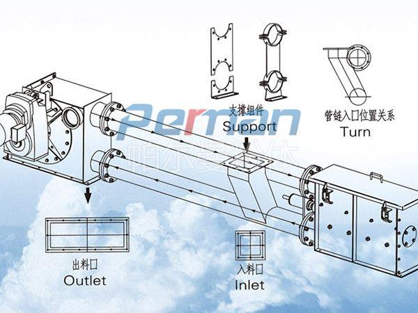 管鏈輸送機(jī)也被稱作管鏈?zhǔn)捷斔蜋C(jī)、管式輸送機(jī)、管道輸送機(jī)、鏈管輸送機(jī)等。是在密閉的管子內(nèi)部進(jìn)行運(yùn)動(dòng)的一個(gè)機(jī)械系統(tǒng),在輸送系統(tǒng)中具有性能穩(wěn)定、節(jié)省能耗、環(huán)保、密封的特點(diǎn)??梢赃B續(xù)輸送粉狀、膏狀、小顆粒狀及小塊狀等散狀物料,也可以水平、傾斜和垂直組合輸送。其廣泛應(yīng)用于化工、化纖、農(nóng)藥礦石、塑料、橡膠、糧食、煤粉、食品行業(yè)、建筑材料等各行業(yè)。