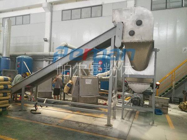 4、設備經(jīng)過特殊設計,殘破包裝袋與物料完美分離,不會摻雜到物料中,也不會掛在分離裝置里。