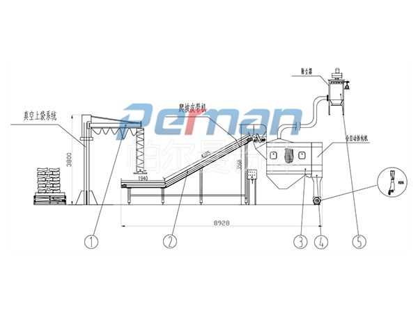 2、現場僅需一至兩人將包裝袋放置皮帶輸送機上即可,減輕了工人的作業強度。
